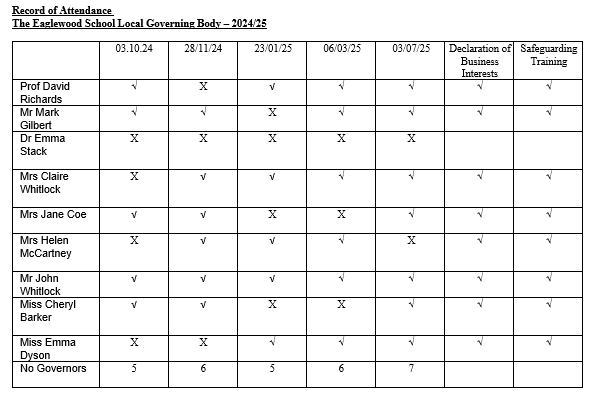 Miss Emma Dyson, Parent appointed by GB/Board due to no election candidates –09/05/2024